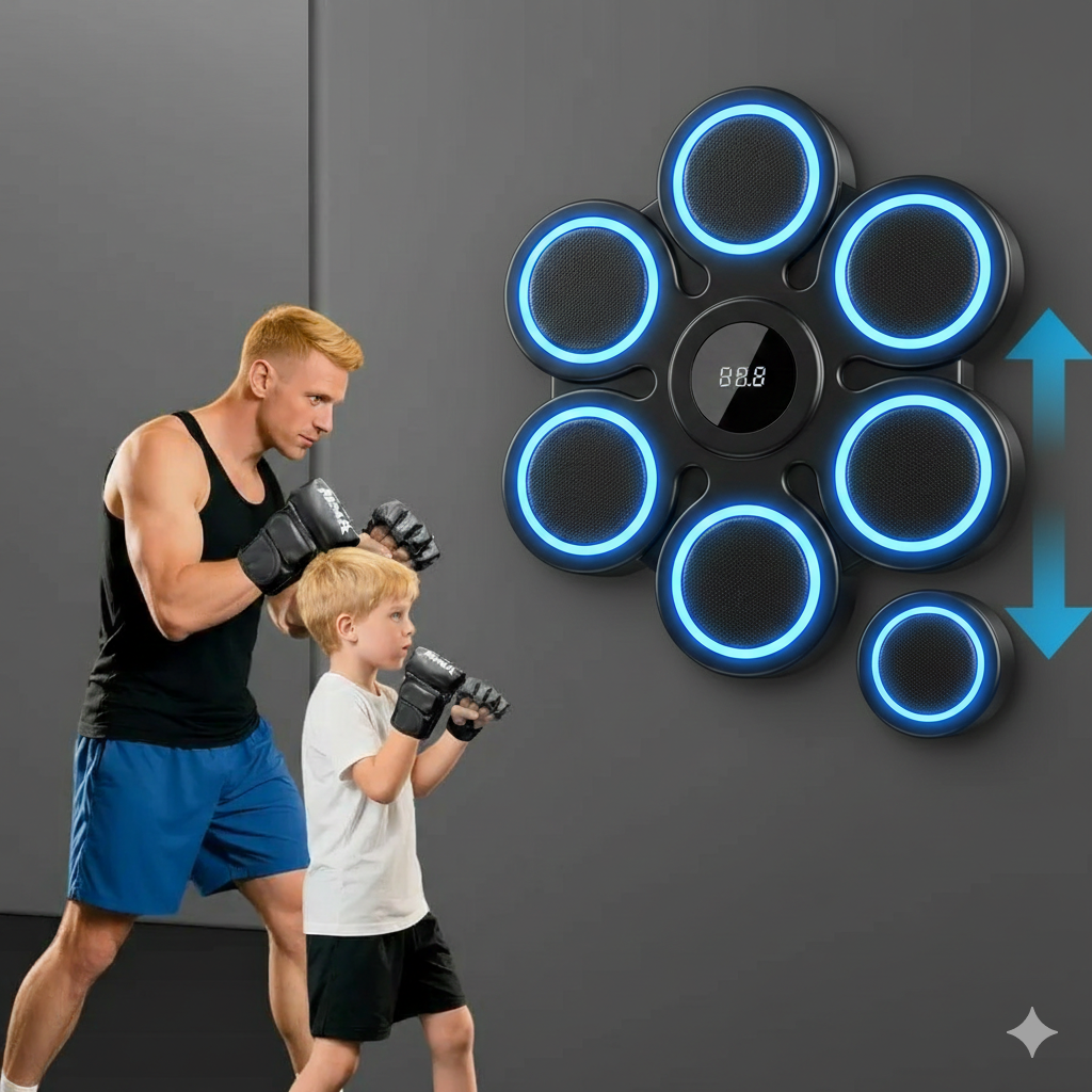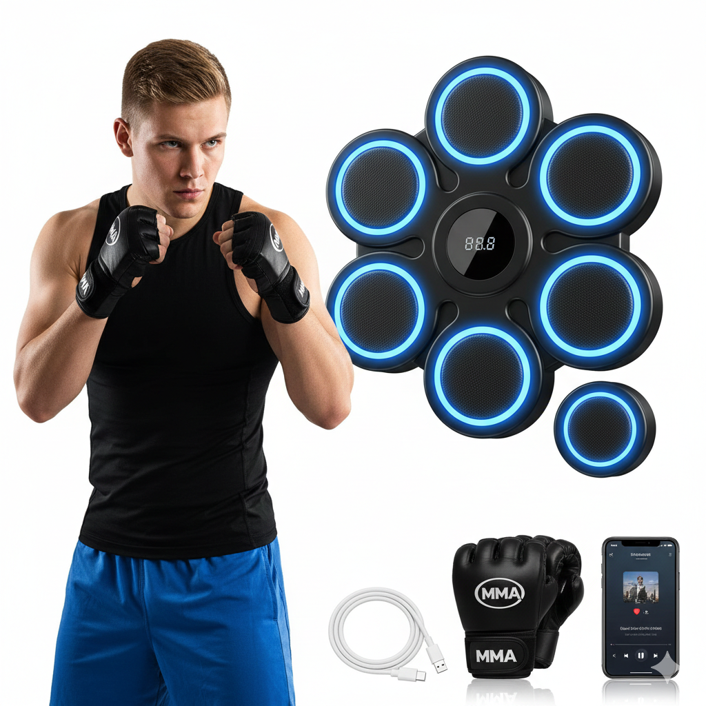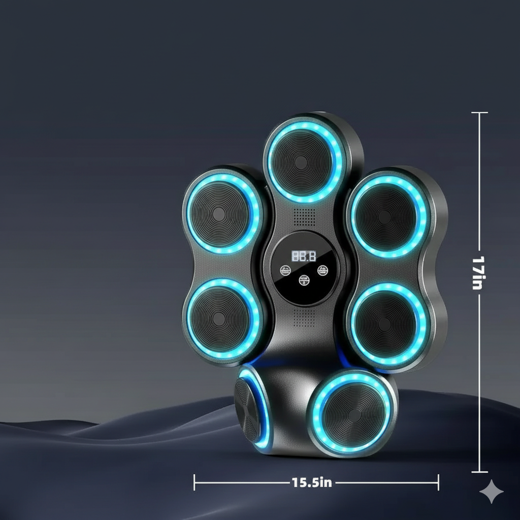 The Smart Music Boxing Machine is an innovative, wall-mounted fitness device that merges boxing training with rhythm-based gaming. It features built-in LED targets that light up in sync with the beat of the music, guiding your punches in real-time. Equipped with Bluetooth speakers, it connects to your smartphone so you can train to your favorite playlists. The hitting surface is made of shock-absorbing materials like high-density foam and PU leather to protect your hands while providing a professional feedback sensation