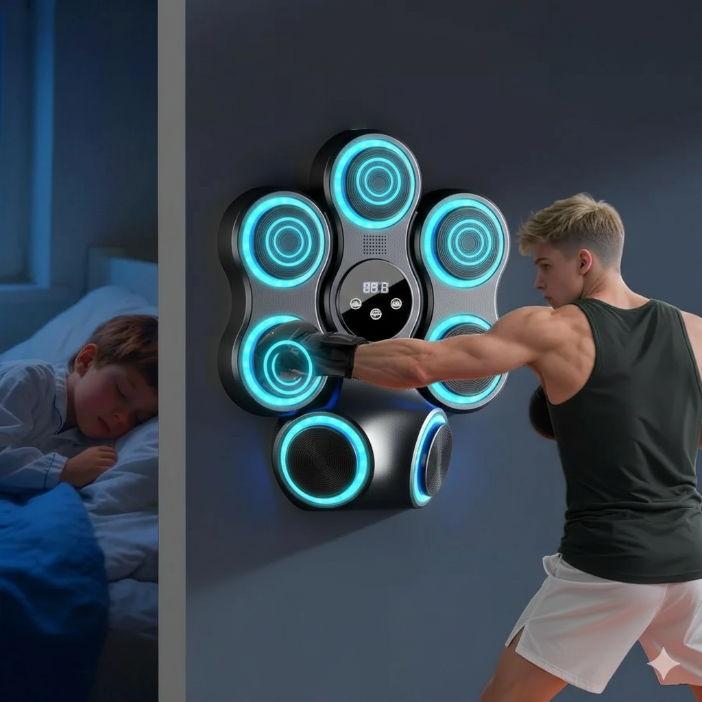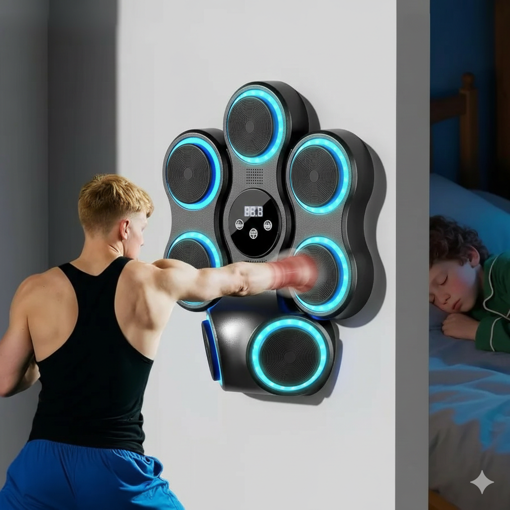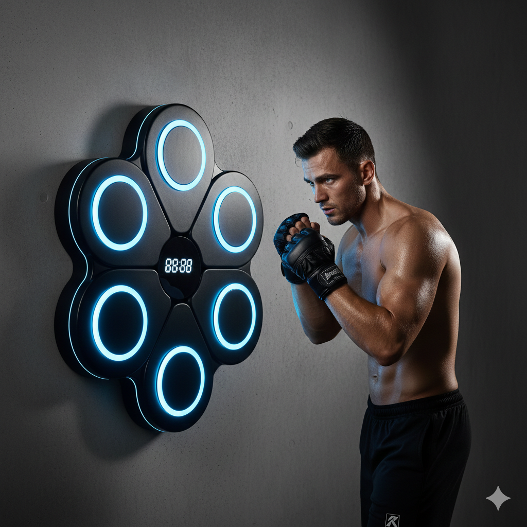 The Smart Music Boxing Machine is an innovative, wall-mounted fitness device that merges boxing training with rhythm-based gaming. It features built-in LED targets that light up in sync with the beat of the music, guiding your punches in real-time. Equipped with Bluetooth speakers, it connects to your smartphone so you can train to your favorite playlists. The hitting surface is made of shock-absorbing materials like high-density foam and PU leather to protect your hands while providing a professional feedback sensation